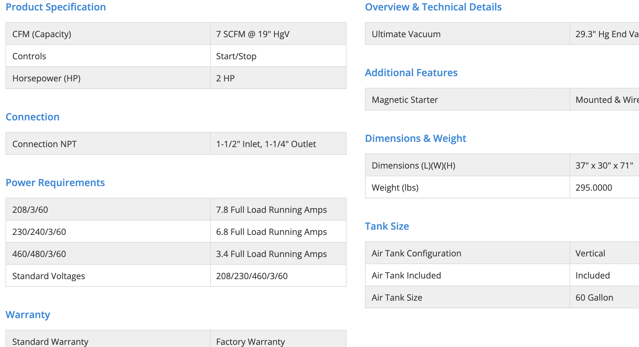 I have many years experience in the compressed air and vacuum industry.Standard Factory Warranties Apply.